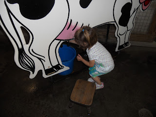 She won herself a minion from Despicable Me. She traded in a few of her other prizes to get the monster prize. Daddy pitched in a game or two to help her too, but she busted those balloons with the dart like there was no tomorrow!